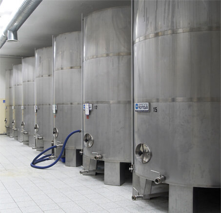 Das Evo-Olivenöl wird unter Luftabschluss in Edelstahlbehältern von ca. 400’000 Litern, 10 Meter unter der Erde, bei einer konstanten Temperatur die 16 Grad nicht überschreitet, gelagert.
