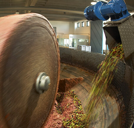 Die moderne vertikale Dekantier- Technologie (Zentrifugation) trennt das Vegetationswasser, das Öl vom Trester, wodurch ein idealer Bestandteil für die Kompostierung, Brotherstellung oder Tierfütterung erhalten wird. Dabei wird auch der Wasser- und Energieverbrauch reduziert.